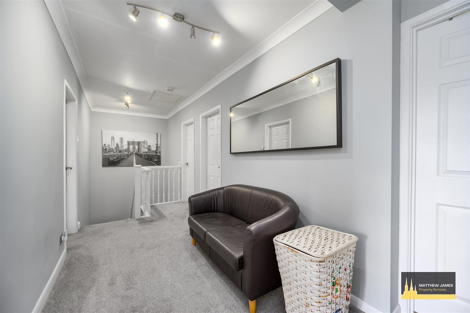 Having balustrade, large feature landing space, access to the loft area (with drop down ladder, boarding and lighting) and doors leading off to: