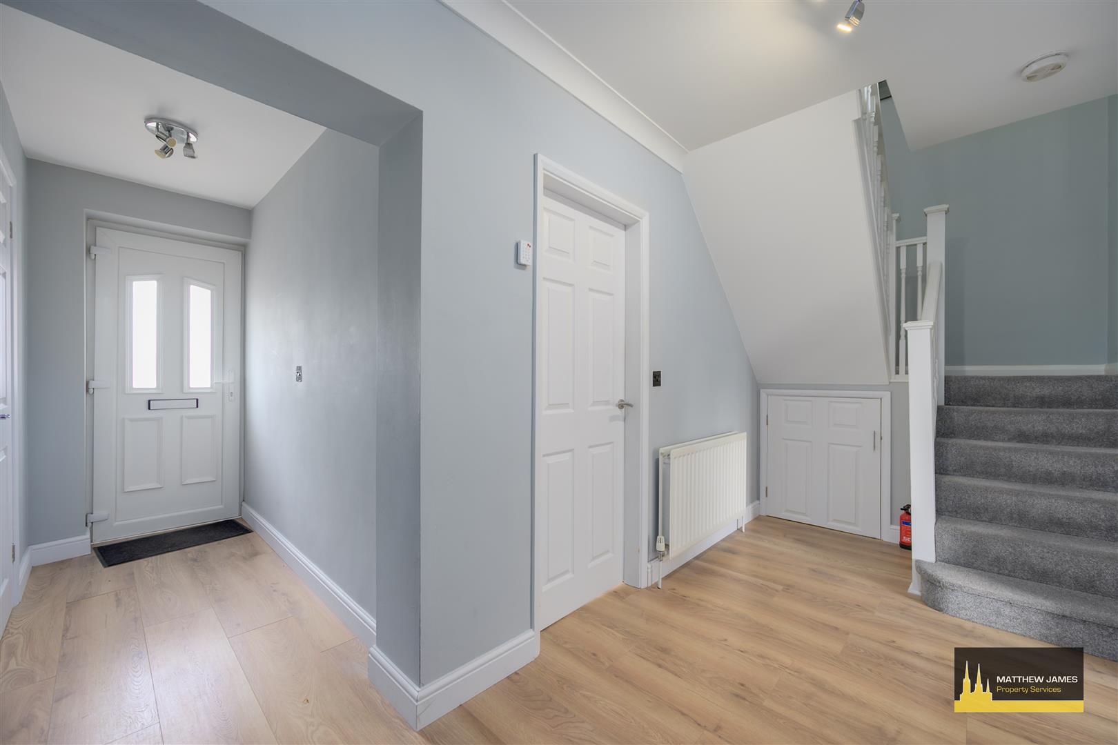 Being larger than average with stairs leading off to the first floor, under stairs storage cupboard and doors leading off to: