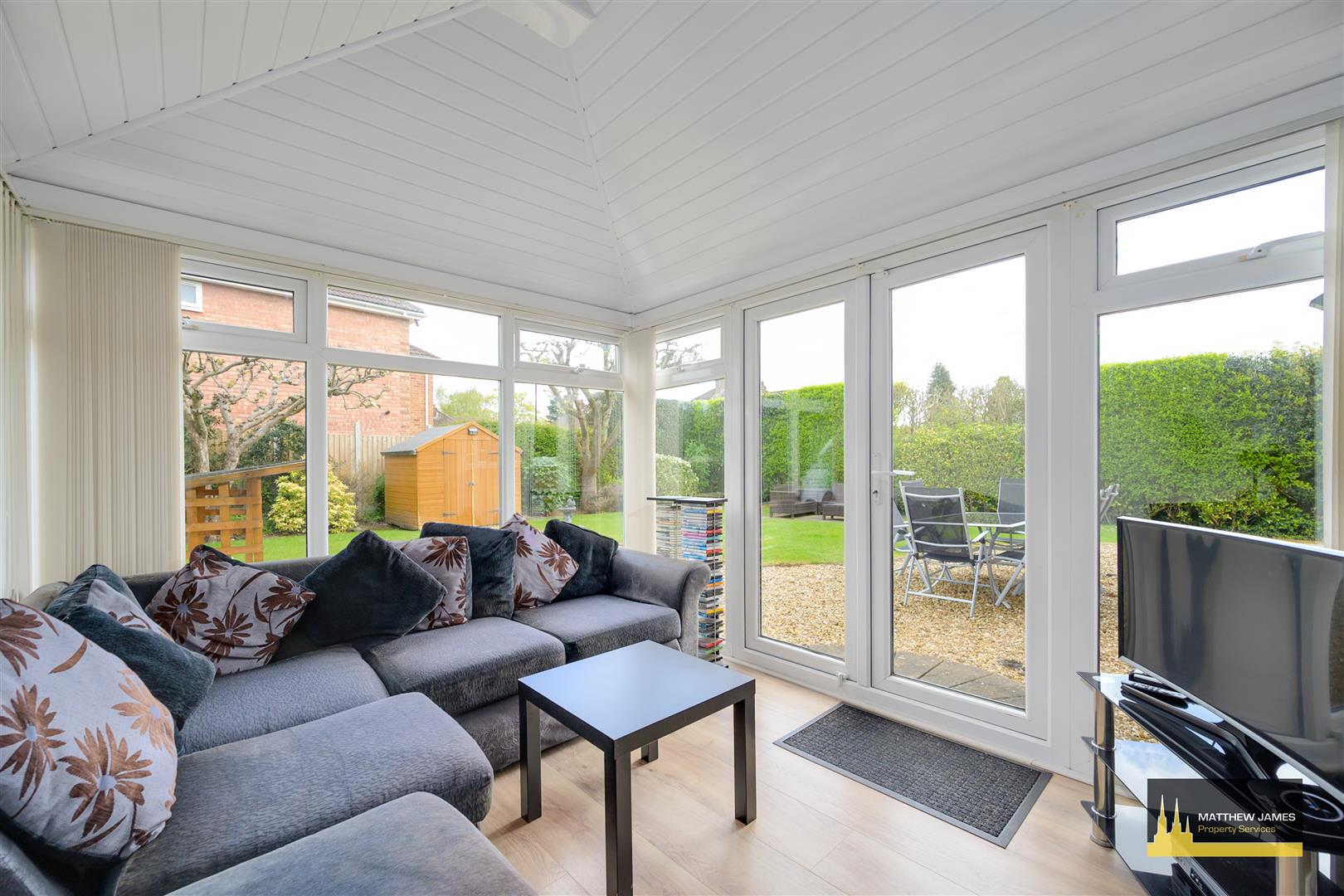 Usable all year round being of PVCu double glazed design with insulated ceiling and roof, vertical modern radiator, TV point and French doors that lead out to the rear garden area.