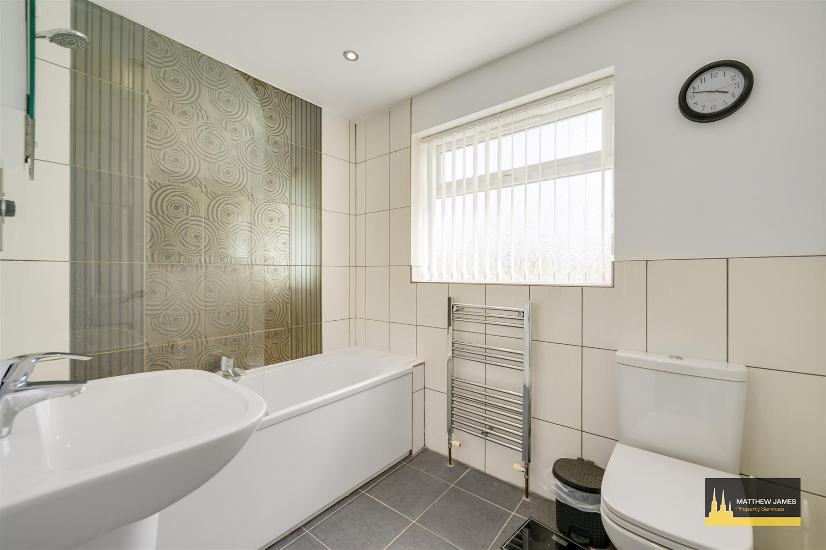 Having a PVCu double obscure glazed window to the side elevation, panel bath with electric shower over, low level flush modern WC, wash hand basin, ladder style heated towel rail, illuminated mirror and modern feature to all splash prone areas.