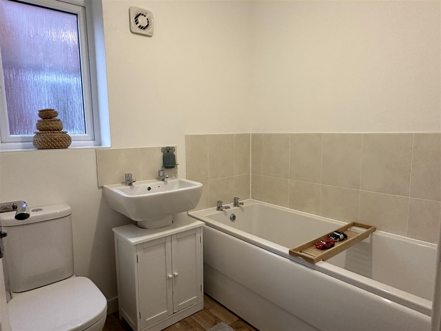Having a low level flush WC, wash hand basin, extractor and tiling to all splash prone areas.