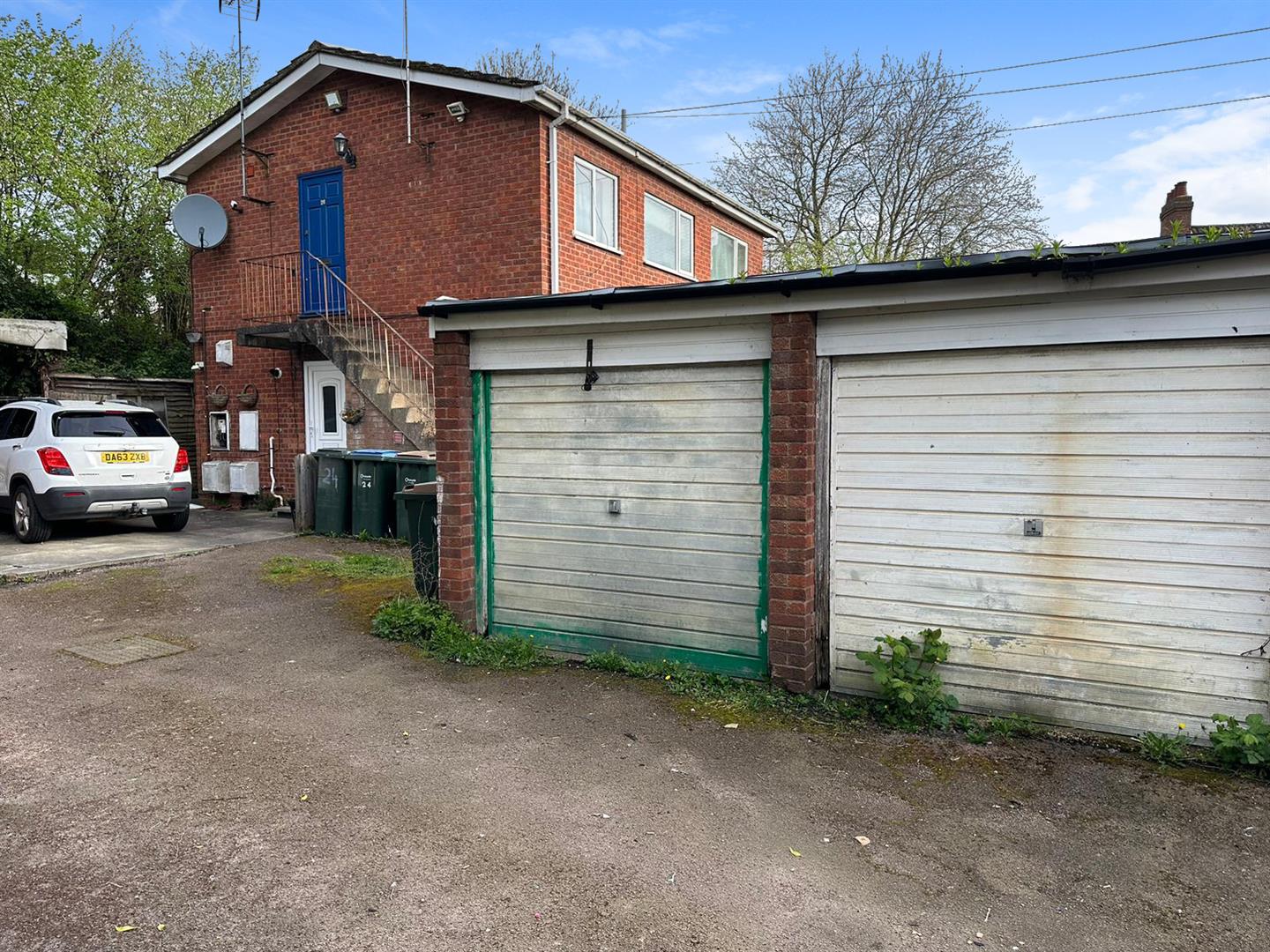 En-bloc and to the rear of the property accessed via a vehicular access.